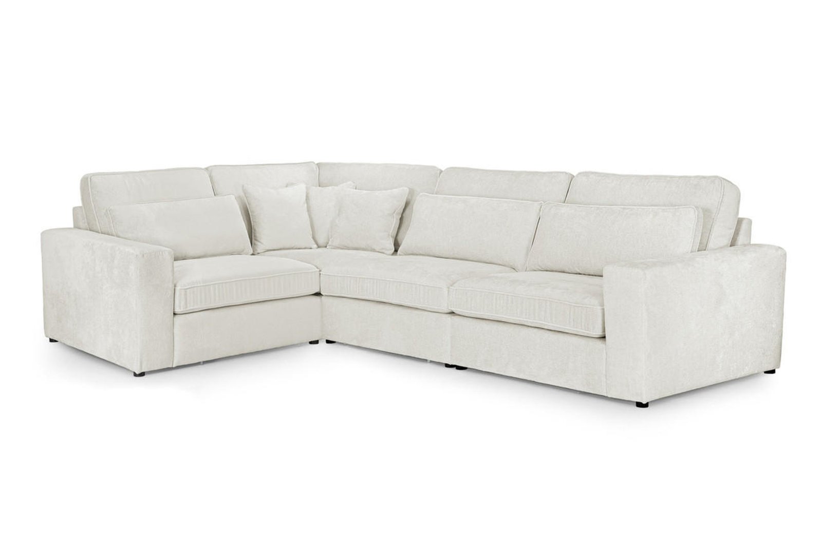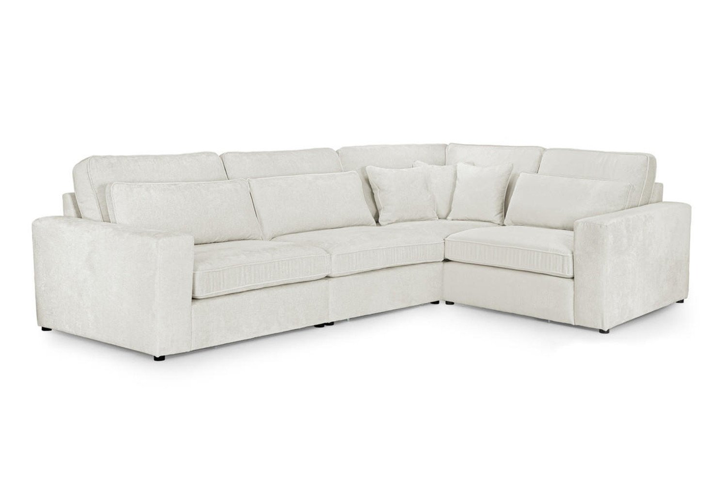 Introducing the Grey And Ivory Chavez Corner Sofa: cosy, comfy and crafted to last. The Chavez sofa structure offers absolute design freedom. Fancy changing things up a bit? Manoeuvre the layout of the modules to craft the perfect sofa for your lifestyle, allowing you to recreate your space at a whim and without hassle. Durability doesn’t have to mean compromise on comfort, especially not with the Chavez. Soft-touch chenille upholstery presents the best of both worlds; the tightly woven yarn is strong enough to withstand the trials and tribulations of day-to-day life- but still retains a soft, cloud-like disposition to relax on. The Chavez comes adorned with cosy cushions. Non-slip panels back the Chavez’s (removable) cushions covers to keep your sofa looking immaculate, while extra comfort cushions are scattered across each module – absolute bliss.